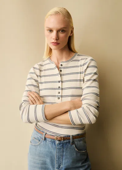 Am-pm Stripe Rib Henley Tee In Cream/navy