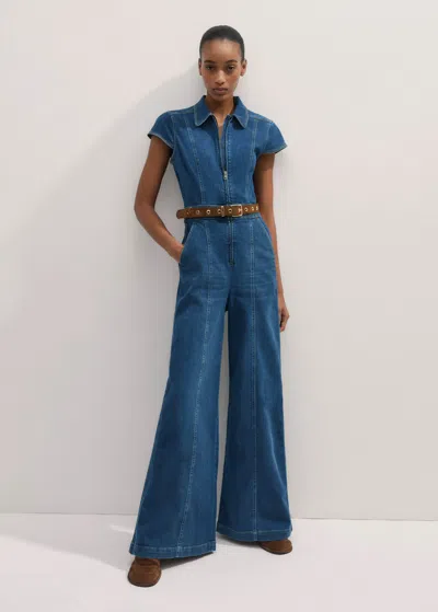 Palazzo Travel Jumpsuit In Mid Blue Wash