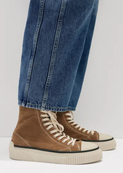Suede High Top Sneaker In Cognac