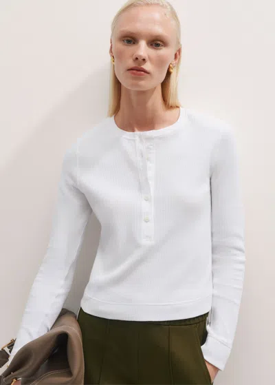 Waffle Texture Henley Top In Soft White