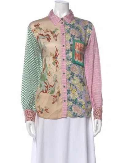 Pre-owned Patterned Long Sleeve Button-up Top In Multi