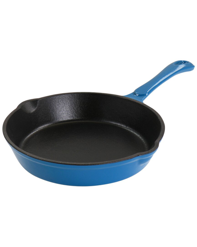 Enameled Round 8 Inch Preseasoned Cast Iron Frying Pan In Turquoise In Blue