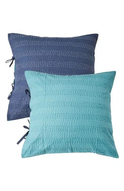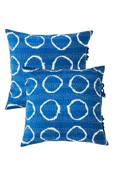 Home Circles Kantha Set Of 2 Cotton Shams In Blue