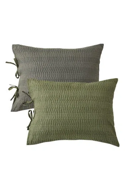 Home Kantha Set Of 2 Reversible Cotton Shams In Green