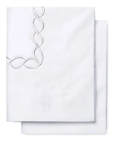 Set Of 2 Double Scallop Embroidered 300 Thread Count Cotton Pillowcases In White