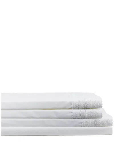 Mélange Home 300 Thread Count Percale Cotton Baby's Breath Embroidery Sheet Set In White