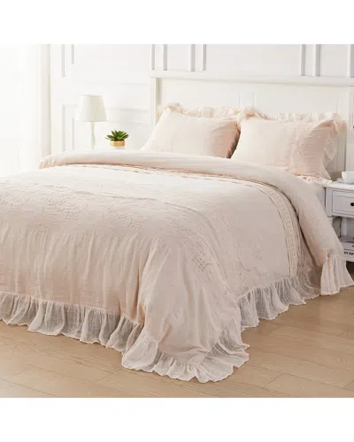 Percale Scallop Trim 3-piece Duvet Set In Rose