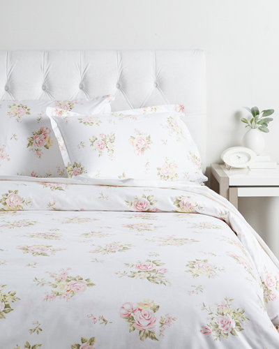 Rose Hydrangea Embroidered Duvet Set In Pink/ White