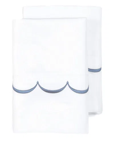 Home 300 Thread Count Scallop Frame Embroidery Percale Cotton Pillowcases In Blue