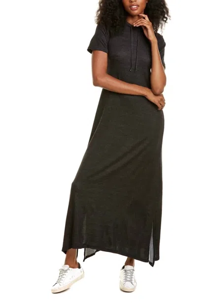 Hooded Maxi Dress In Black Heather In Gray