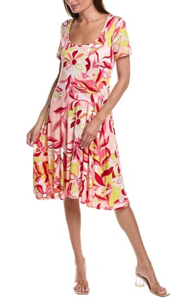 Swirl Floral Printed Jersey Dress In Pink/citrus/ivory In Multi