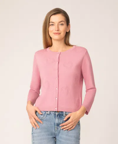 Women's Heart Stitch Button Cardigan Sweater In Pink