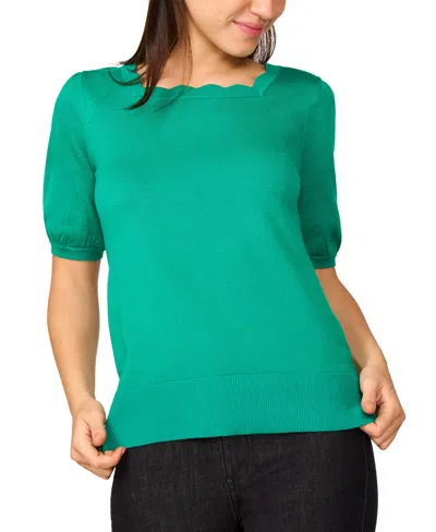 Women's Scalloped Short-sleeve Sweater In Pepper Green