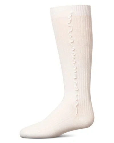Kids' Ribbed Knee Sock With Wavy Line Ruffle In White
