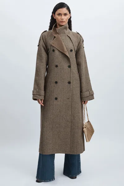 Beige Check Wool-blend Houndstooth-check Trench Coat