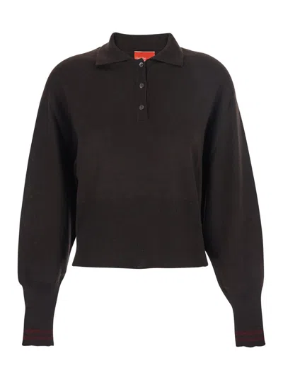 Brown Polo Shirt With Wide Classic Collar And Long-sleeve In Wool Woman