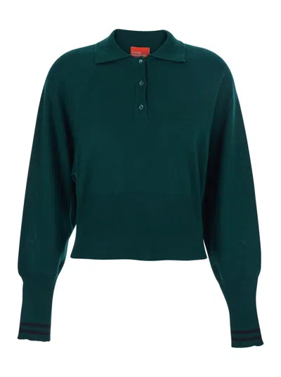 Green Polo Shirt With Wide Classic Collar And Long-sleeve In Wool Woman