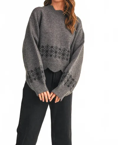 Scallop Hem Embroidered Sweater In Charcoal In Gold