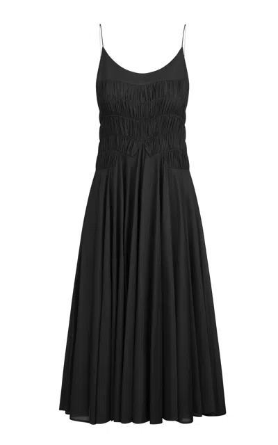 Kaede Smacked Cotton Dress In Black