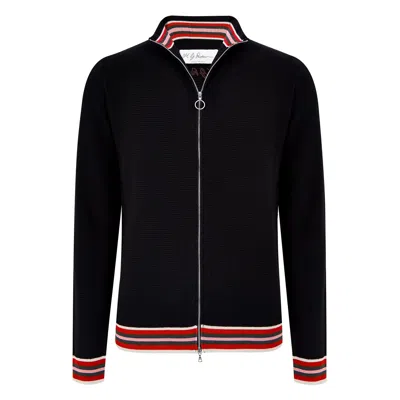 Men's Black Textured Extrafine Merino Bomber Jacket