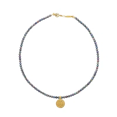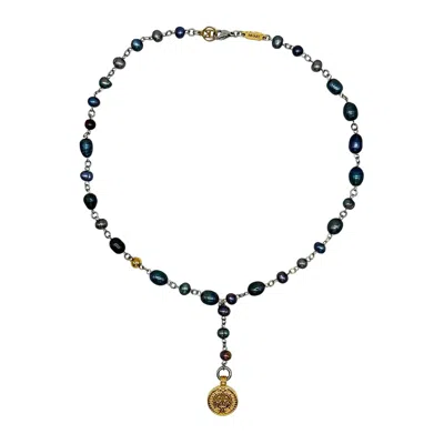 Women's Gold Linked Black Pearl Necklace In Metallic