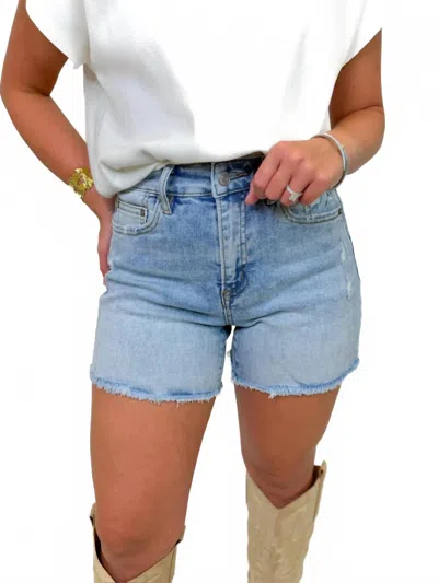 Raw Edge Denim Shorts In Light Wash In Blue