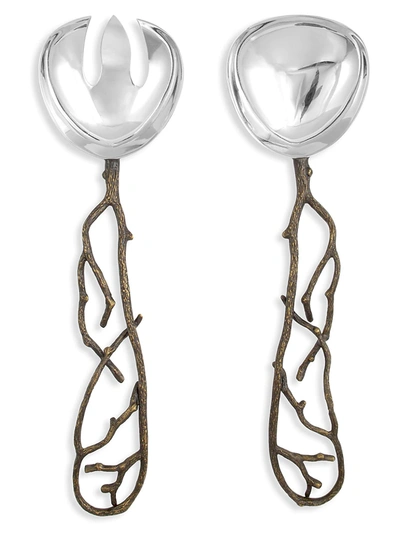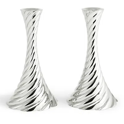 Botanical Leaf Candleholders, Set Of 2 In Nickel Plate