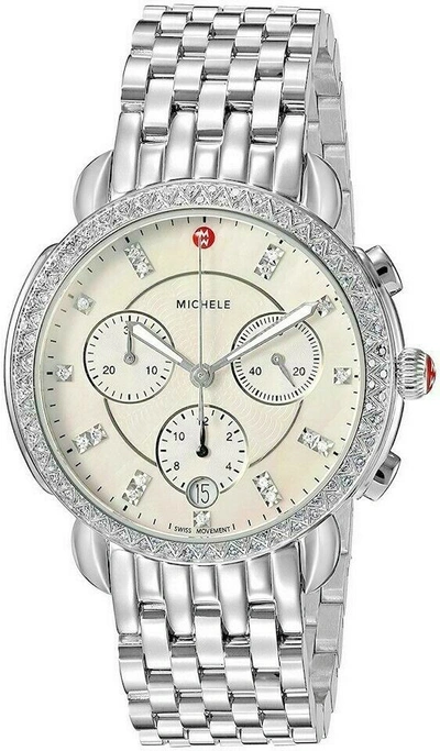 Pre-owned Authentic Michel Cx39 S Silver Diamond Chronograph Mww03d000046 Womens Watch
