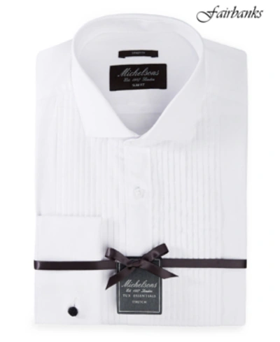 Men's Slim-fit Stretch Pleated Bib French Cuff Tuxedo Shirt In White