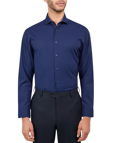 Men's Dot-print Wrinkle-free Dress Shirt In Navy