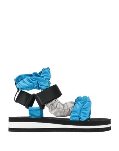 Woman Sandals Azure Size 10 Textile Fibers In Blue