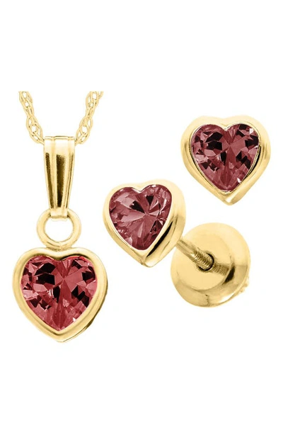 Babies' 14k Gold Birthstone Necklace & Stud Earrings In January