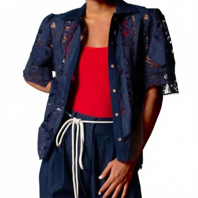 Constance Granadilla Linen Top In Marine Blue