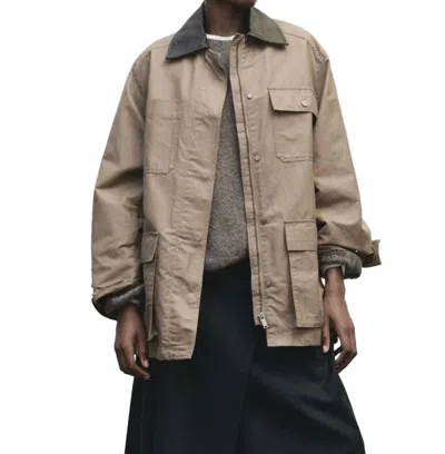 Contrast Collar Utility Jacket In Dark Beige In Neutral