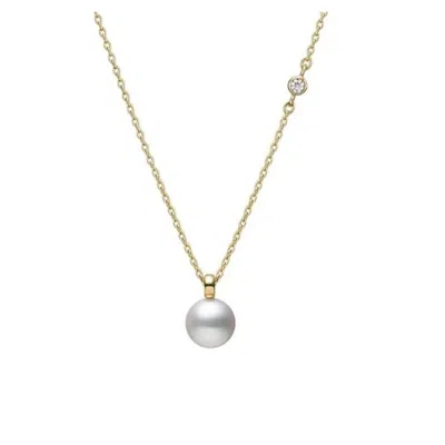 Akoya Cultured Pearl With Diamond Pendant In 18k Yellow Gold - Mpq10159adxk