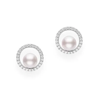 18k Diamond Pave Studs With Akoya Pearls - Mea10314adxw In White
