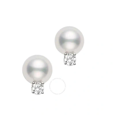Akoya Cultured Pearl Stud Earrings 8 X 8.5 Mm; With 0.10ct Diamonds; Set In 18k White Gold