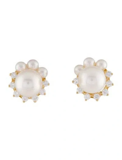 Pre-owned 18k Pearl & Diamond Stud Earrings In Multi