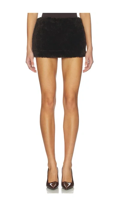 Faux Fur Mini Skort In Brown