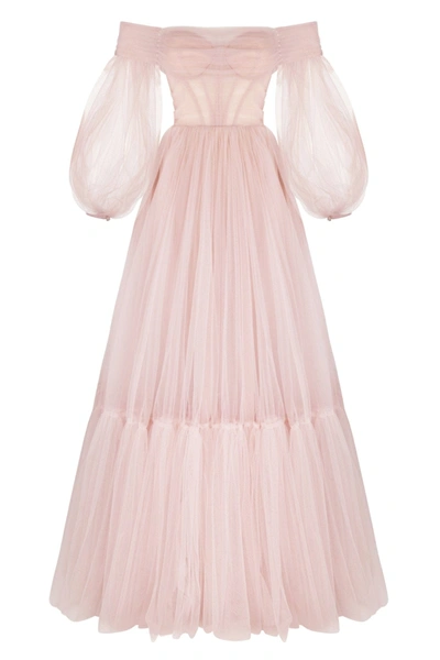 Misty Rose Sparkly Off-the-shoulder Tulle Dress