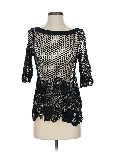 3/4 Sleeve Top Black Boatneck Tops