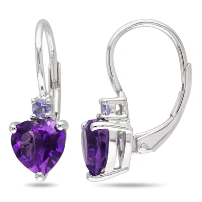 2 5/8ct Tgw African Amethyst And Tanzanite Heart Leverback Earrings In Sterling Silver In Purple