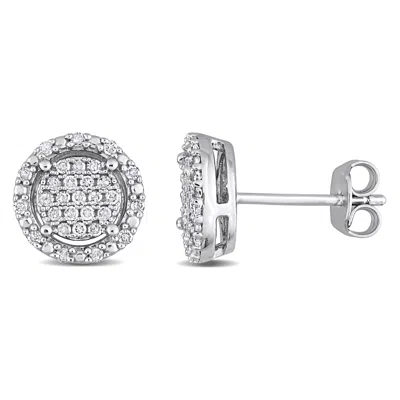 1/3ct Tw Diamond Cluster Halo Earrings In Sterling Silver In White