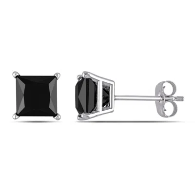 2ct Tw Princess Cut Black Diamond Stud Earrings In 10k White Gold