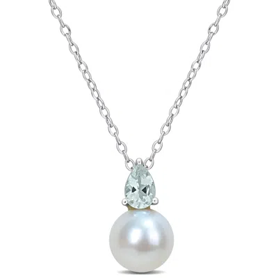 3/5ct Tgw Created Ruby And 8.5-9mm Cultured Freshwater Pearl Necklace Silver