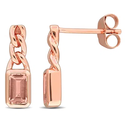5/8ct Tgw Octagon-cut Morganite Twisted Earrings 14k Rose Gold