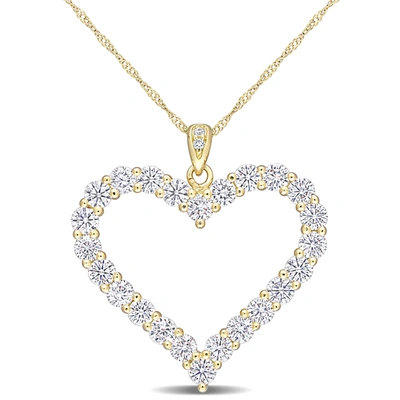 2 2/5 Ct Dew Created Moissanite Heart Pendant With Chain In Yellow Plated Sterling Silver