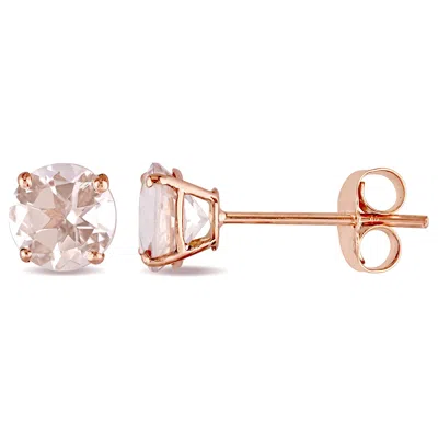 1ct Tgw Morganite Solitaire Stud Earrings In 14k Rose Gold In Silver