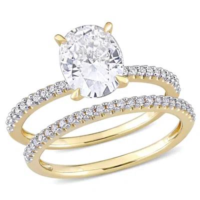 2ct Dew Cushion Created Moissanite And 1/4ct Tw Diamond Bridal Ring Set In 14k Yellow Gold In White