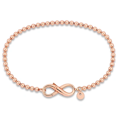 Pink Bead Link Bracelet W/infinity Clasp In Rose Silver - 7.5 In. In Gold